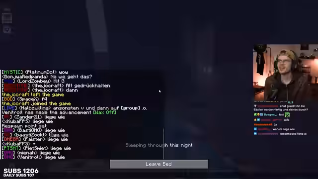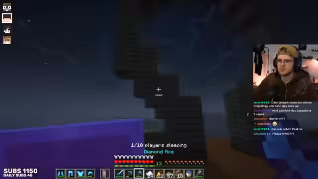 13:33:46Der Streamer reflektiert über die Highlights des Tages, wobei Alphasteins Auftritt als besonders positiv hervorgehoben wird. Er äußert jedoch auch Enttäuschung über die geringe Produktivität, da viele nicht anwesend waren. Trotzdem werden einige Erfolge genannt, wie die Crop Farm, Enchantments, Ausrüstung und der Supersmelter. Fuchsel hat fast die Holzfarm fertiggestellt. Fabo lobte die Fortschritte auf dem Server, was den Streamer motiviert. Es wird über die Möglichkeit gesprochen, Raids gezielt auszulösen und die Macht, die damit einhergeht. Die Diskussion wechselt zu persönlichen Anekdoten, wie dem Erhalt eines GAG-Verbots. Der Streamer wird gebeten, beim Ausheben eines Loches zu helfen, was er zunächst ablehnt, aber dann doch in Betracht zieht.