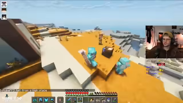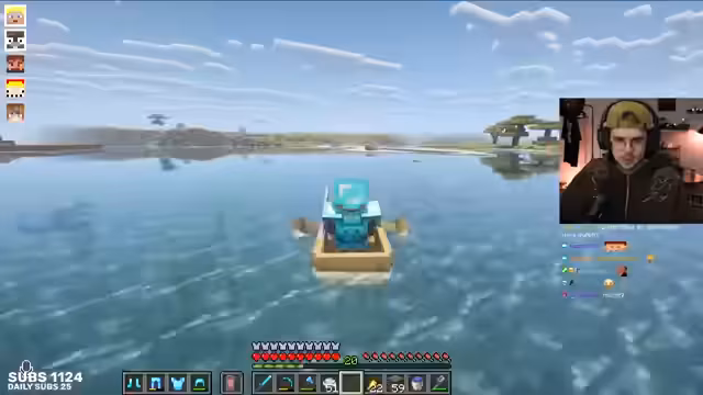 02:50:06Die Suche nach einem idealen Basen-Standort gestaltet sich schwierig, obwohl ein Dorf mit High-Ground-Potenzial entdeckt wird. Es wird beschlossen, einen bereits vorbereiteten Spot zu nutzen. Parallel dazu konzentriert sich ein Spieler auf die Beschaffung eines Tridents, indem er wiederholt Drowned besiegt, was jedoch erfolglos bleibt. Die Kamera des Spielers fällt dabei immer wieder aus, was für Frustration sorgt. Es wird überlegt, einen Kartographen im Dorf zu finden, um Karten zu handeln, wofür Smaragde und Papier benötigt werden. Die Spieler tauschen sich über ihre Ressourcen aus, während sie versuchen, die notwendigen Gegenstände zu sammeln.