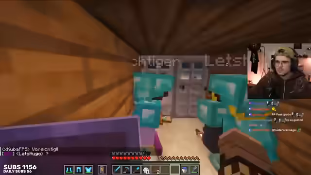 01:56:05Die Community diskutiert Hugos früheren Bann, der anscheinend wegen seiner Clips erfolgte, und die allgemeine Ruhe des Vortages, die nun durch Hugos Rückkehr gestört werden könnte. Es besteht die Befürchtung, dass es wieder chaotisch wird. Hugo ist mittlerweile am Spawn angekommen, während andere Spieler noch auf dem Weg sind oder sich bereits wieder entfernt haben. Es wird ein 'Geschenk für alle' angekündigt, das jedoch noch nicht konkretisiert wird. Die Spieler sammeln Holz für ein unbekanntes Projekt, wobei die Idee eines 'Bootpranks' für Hugo im Raum steht. Es wird auch die Möglichkeit erwähnt, dass die Tagesschau einen Beitrag über Craft Attack gemacht hat, was auf die wachsende Bekanntheit des Projekts hinweist.