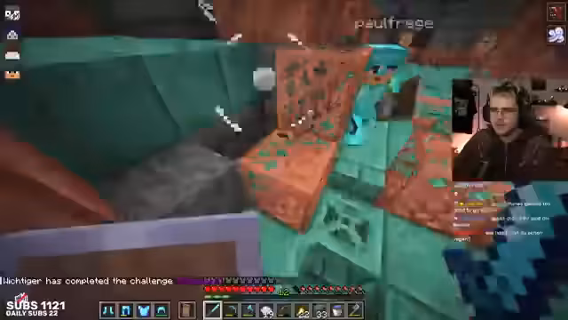 04:48:09Nachdem die Gruppe eine Tür geöffnet und sich durch Spawner gekämpft hat, stoßen sie auf eine Vielzahl von Mobs, darunter Babyzombies mit Rüstung und Eisenschwertern. Die Situation eskaliert schnell, und die Spieler müssen sich einbauen, um nicht zu sterben. Trotz der Schwierigkeiten gelingt es ihnen, Schlüssel zu sammeln. Es stellt sich heraus, dass sie drei Schlüssel erhalten haben, was sie dazu anregt, weitere Trial Chambers zu erkunden. Ein Spieler bemerkt, dass die Mobs in den Trial Chambers automatisch gefarmt werden können, wenn man Tränke trinkt und mit mehreren Leuten dort steht, was das Farmen von Schlüsseln erheblich erleichtern würde.