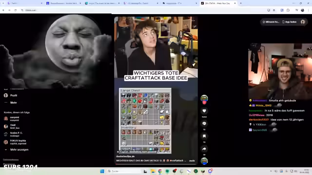 00:05:56Der Streamer begrüßt die Zuschauer zu Tag 2 von Craft Attack und schildert, dass er nach nur sechs Stunden Schlaf und nächtlichem Scrollen auf TikTok immer noch müde ist. Er beschreibt das Gefühl, als kleiner Streamer gegen die großen Firmen anzukämpfen, da viele andere Streamer durchgängig streamen. Ein Video, das er gestern geklärt hat, soll heute gegen 12 oder 13 Uhr erscheinen. Er plant, heute mit Mike etwas im Rollenspiel-Bereich zu unternehmen und möchte sich auf das Bauen einer Basis konzentrieren, nachdem er sich gestern umentschieden hat. Trotzdem möchte er auch einen Mace und Trident erhalten. Er erwähnt, dass er seine Mitarbeiter gut bezahlt und zeigt sich erfreut über die Zuschauerzahlen.