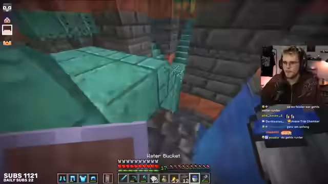 05:38:46Die Exploration in den Trial Chambers konzentriert sich auf die Suche nach dem besten Standort für einen sicheren Basisbau. Der Streamer identifiziert eine perfekte Cave und warnt vor potenziellen Fallen wie einer Zwischenebene beim Bauen. Er diskutiert die Herausforderungen des im Wasser liegenden Spawnpunkts und befürchtet einen kompletten Abbruch des Streams, sollte er sich versehentlich töten. Es werden verschiedene Bautechniken wie Wasserheber und Fallen mit Lapislazuli-Blöcken erwähnt, die ohne das Modifikationspack Vanilla Tweaks nicht möglich wären. Eine Diskussion über den Nutzen von Pfeilen ohne Bogen und die bevorzugte Maze-Funktion von Vanilla Tweaks schließt sich an.