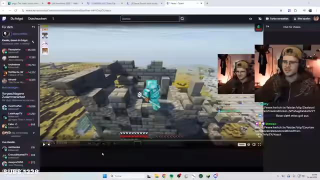 05:48:45Es wird eine Frage gestellt, ob man die Geschichte, was bei Abcub in der Base passiert ist, erzählen soll, wobei ein Drowned aus dem Wasser kam. Die Frage nach 'Team Vini oder Team Stegi' wird schnell als 'totes Thema' abgetan. Kurz darauf wird eine Falle erwähnt, die Hanno zum Verhängnis wurde. Der Spieler Vini gibt an, acht solcher Fallen gebaut zu haben. Es wird auch über das Teilen von Spotify-Playlists gesprochen, da jemand Schwierigkeiten hat, eine bestimmte Playlist zu finden.