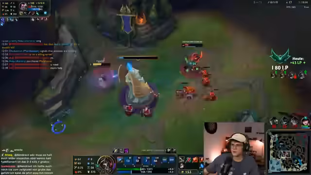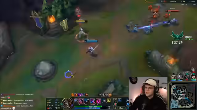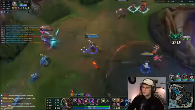 02:37:32Der Streamer beginnt mit einer Analyse des allgemeinen Spieltempos in der aktuellen Season, bemerkend, dass Games subjektiv schneller anfühlen, obwohl sie faktisch gleich lang oder länger dauern. Sein Fokus liegt auf einer spezifischen Champion-Strategie: Er spielt Support und vermeidet es, einem Blitzcrank-Hook zu erliegen. Es kommt zu einem Fehler, bei dem der Gegner einen Minion nutzt, um den Streamer zu holen, was zu einem Kill führt.