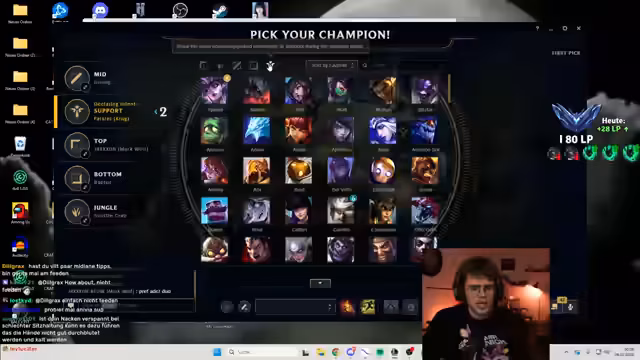 00:09:43Nach der Begrüßung weiterer Chat-Teilnehmer, führt der Streamer eine kurze persönliche Auseinandersetzung mit einer Person namens Merle im Chat. Er berichtet von seiner Teilnahme an einer Geburtstagsfeier bei 'Nickbit' ohne Alkohol. Der Streamer wechselt dann das Thema zu einem technischen Problem, bei dem er den Wäschekorb nicht findet, und entschuldigt sich für die Verzögerung. Daraufhin widmet er sich erneut den Begrüßungen und interagiert mit dem Chat, bevor er endgültig League of Legends als Spiel für den Stream wählt.