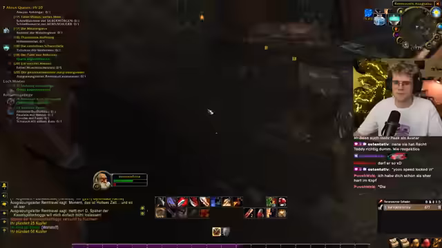 00:38:55Während der WoW-Session diskutieren der Streamer und seine Begleiter Strategien für Quests in Darkshore und Loch Modan. Sie planen ihre Route, sprechen über Levelanforderungen für bestimmte Gebiete und koordinieren Gruppenkämpfe. Dabei werden Herausforderungen wie niedrige Spawnraten von Monstern und volle Inventare thematisiert, während sie versuchen, sich auf das anstehende LoL-Quiz vorzubereiten.
