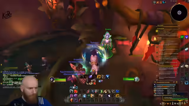 08:53:34Die Gruppe betritt ihren ersten zufälligen Dungeon in Retail. Der Streamer ist aufgeregt, da er die Mechaniken erst lernen muss. Es wird eine dynamische Kampfsituation beschrieben, in der der Streamer Schwierigkeiten hat, die Stuns zu managen und seine Abf verteilt. Der Chat gibt ihm Hinweise, und der Streamer erkennt seine Unerfahrenheit im Retail-Stil an, besonders im Vergleich zu seinem Classic-Mindset.