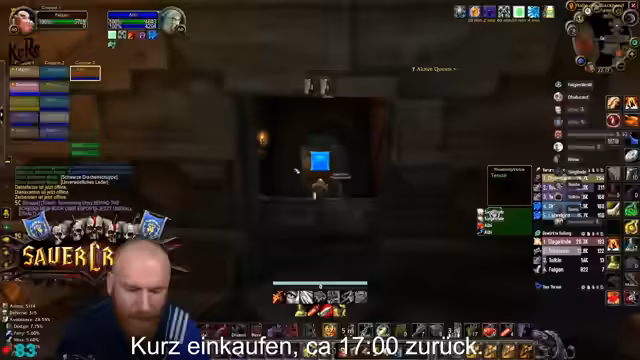 06:43:44Der Streamer beschäftigt sich intensiv mit der Gruppensuche für verschiedene Instanzen. Für LBRS wird eine fehlende Gruppe für zwei DDs gesucht, wobei die Instanz als einfach eingestuft wird. Gleichzeitig wird die Suche nach einer Gruppe für Scholomance erwähnt, um das Buchband für Lichtblitze zu farmen. Für den kommenden Tag wird eine Gruppe für TPC (Thekal's Priesterly Cavern) angekündigt, mit dem Ziel, den Crusader einzuweihen. Streamer äußert sich auch über das GDKP-System als bevorzugte Methode für Lootverteilung.