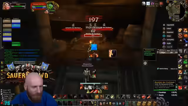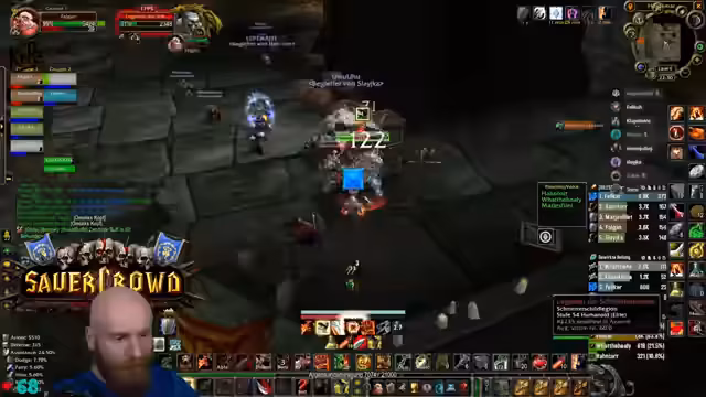 02:59:37Der Streamer und seine Gruppe begannen ihren Run im Dungeon BRD (Blackrock Depths) mit einem entspannten Vorgehen. Nach dem ersten Boss wurden strategische Hinweise für den weiteren Verlauf gegeben, etwa das Positionieren an der Wand, um nicht in gefährliche Mobs zu geraten. Als Problem wurde die hohe Heilung durch Priester identifiziert, was als Overheal Party bezeichnet wurde. Nach einem Bossfight wurde ein seltener Gegenstand, das Messer des Meuchelmörders, von einem Spieler bekommen.