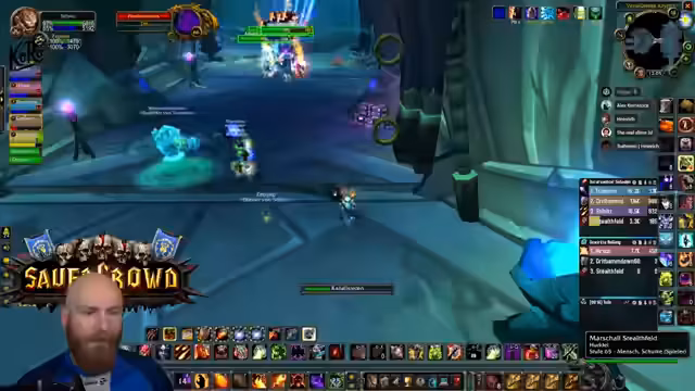 12:13:47Die Gruppe stößt auf taktische Schwierigkeiten bei der Bekämpfung der Mobs, insbesondere bei der Koordination von AOE-Fähigkeiten und dem Management von Cooldowns. Es wird darauf hingewiesen, dass ein Warlock als wichtigste AOE-Quelle fungiert, dessen Fehlen den Schaden der Gruppe massiv beeinträchtigen würde. Die Positionierung und das Timing von Fähigkeiten wie Blizzard sind entscheidend für das Überleben und den Erfolg des Pulls.