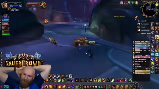 12:12:44Der Stream zeigt den kontinuierlichen Grind-Fortschritt der Gruppe, die mit 940 Spielern eine nahezu komplette Einheit bildet. Ein großer Teil der Spieler befindet sich im Zombie-Grind-Modus und nutzt eine Route, die auf hoher Geschwindigkeit betrieben wird, wobei XP-Ruf und Effizienz im Fokus stehen. Das Ziel ist es, Level 70 zu erreichen und dabei rafioptimierte Routen einzusetzen, auch wenn dies bedeutet, dass sich das Tempo an langsamere Gruppenteilmer anpassen muss.
