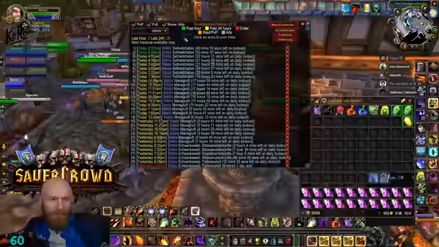 03:19:09Die Haupttätigkeit besteht im wiederholten Besuchen des Dungeons Sethekk Hallen, um Erfahrungspunkte (EP) zu sammeln. Der Streamer und seine Gruppe planen, etwa acht Runs durchzuführen, um zwei Quests abzuschließen und gleichzeitig effizient EP zu farmen. Es gibt eine kurze Diskussion über den Ruf bei der Fraktion Zangar und ob dieser bereits capped ist, was das Farmen der Questbomben beeinflusst. Der Streamer stellt fest, dass das Farmen sehr zeitaufwendig ist und bereits Hunderte von Bomben verbraucht wurden.