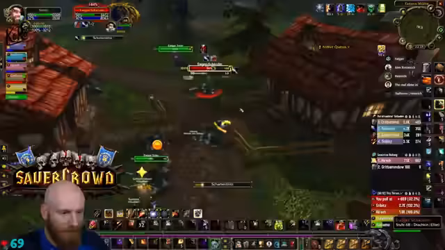 10:02:51Beim Bosskampf im Inneren der Festung gibt es Probleme mit dem Tanking und den Adds. Der Streamer gibt klare Instruktionen: Fokus liegt auf dem Aufseher, während die restlichen Adds gecleart werden sollen. Er mahnt zur Vorsicht, da der Boss Schlaf oder Segen-ähnliche Effekte einsetzen kann. Der Kampf erfordert präzises Aggro-Management und die Kontrolle der Mobs, um einen Wipe zu verhindern. Nach dem Sieg wird die Quest abgegeben und eine neue angenommen, um den Event-Questfortschritt zu sichern.