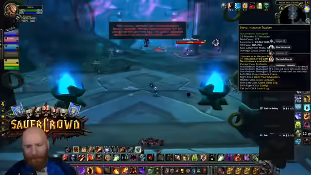 01:34:27Der Streamer berichtet über den aktuellen Levelprozess, wobei er die TBC-Levelphase aufgrund des Sauercrowd-Events als lästig empfindet. Derzeit wird Managruft mit der Gruppe absolviert, um bis Level 66 zu gelangen, wobei eine XP-Rate von circa 190.000 pro Stunde erreicht wird. Es wird ein schnelleres Leveln durch alternative Dungeons wie Ramparts oder auch einen Wechsel zu Sethekk Halls in Betracht gezogen, sobald der Ring abgeschlossen ist. Die Priorität liegt auf XP und Ruf.