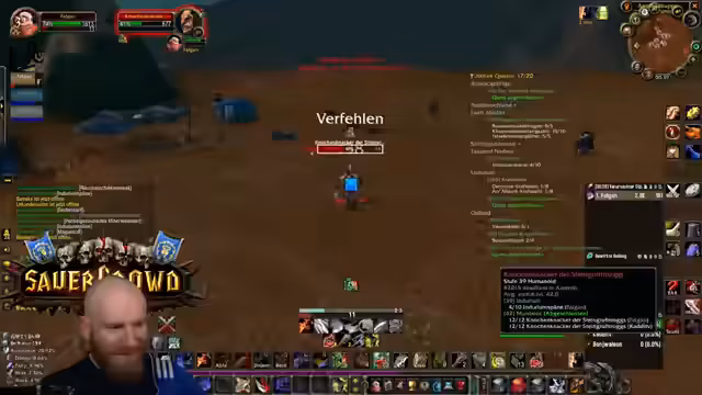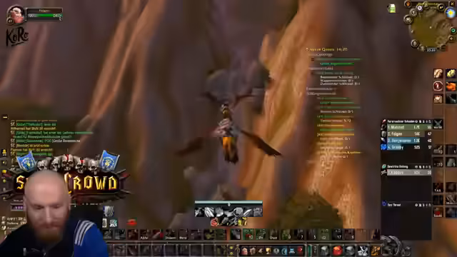 09:36:30Die Jagd auf Elite-Drachen im Ödland beginnt. Die Gruppe ist sich der Gefahren bewusst, wie das Spawnen eines zweiten Drachen, und agiert daher sehr vorsichtig. Es kommt zu strategischen Entscheidungen, bei denen sich der Streamer weigert, ein Schild zu nutzen, da er bereits Feuerzauberschutz hat. Die Jagd nach dem Mount und dem Loot steht im Fokus, während die Gruppe auf Aggro-Management und Resets achtet.