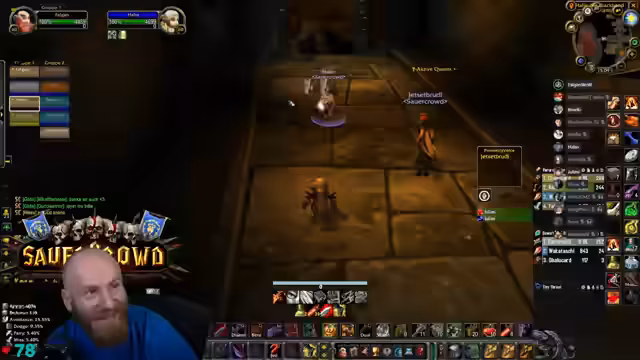 12:47:09Der Stream neigt sich seinem Ende zu. Der Streamer startet einen letzten Dungeon-Rundgang in Stratholme und nutzt die Zeit, um sich bei seinen Zuschauern und den Mitspielern zu bedanken. Die Interaktion bleibt locker, es werden letzte Ausrüstungsfragen geklärt und eine Einladung für einen möglichen Folge-Stream ausgesprochen, bevor der Stream offiziell endet.
