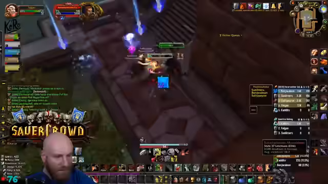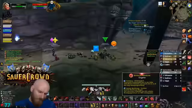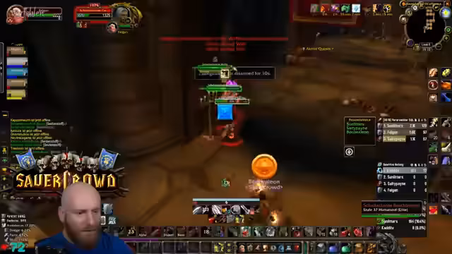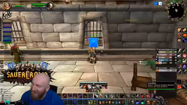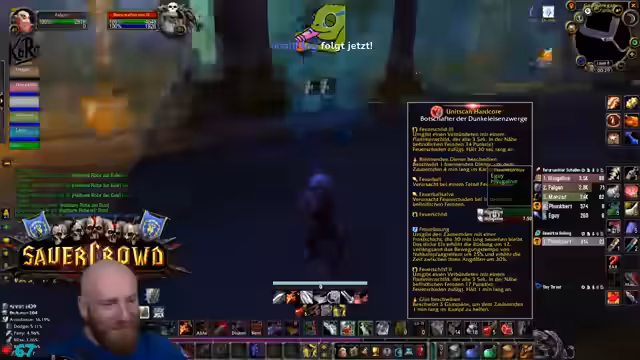 06:21:37Die Gruppe bereitet sich auf einen komplexen Dungeon-Einstieg vor, bei dem man sich auf die Mobs konzentrieren muss, die weglaufen könnten. Ein Schmerzzauber wird als weniger schlimm eingestuft. Der Streamer äußert Bedenken bezüglich des Tankings und der Mananachfrage des Kriegers und empfiehlt möglicherweise eine andere Waffe. Die Taktik beim Pullen von Mobs wird angepasst und man nutzt Sweeping Strikes effektiver. Schließlich beginnt die Vorbereitung auf einen Bosskampf mit einem Gong, der als ein Eventbossfight beschrieben wird.