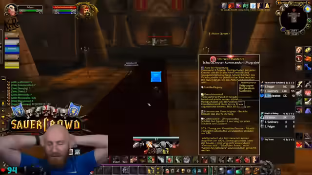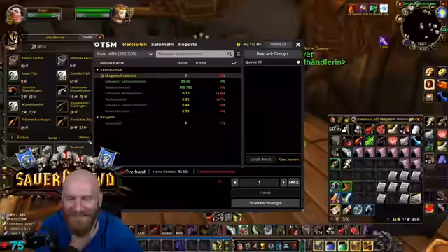 10:40:31Die Gruppe beschäftigt sich mit dem Sammeln von Questitems für den Dungeon Gnomregan, insbesondere den Blaulaubknollen. Nachdem alle Items gelootet wurden, soll es losgehen. Ein Spieler fragt nach dem Skill als Schattenpriester, woraufhin der Streamer erklärt, dass der Schaden über Dots und Gedankenschlag läuft und Aggro-Probleme eher unwahrscheinlich seien. Die Stimmung ist gelassen und man ist zuversichtlich für den Dungeon-Einstieg.