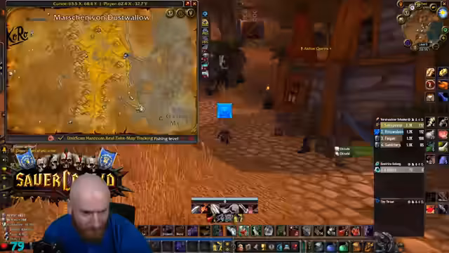 06:03:25Die Gruppe diskutiert über den besten Weg, um eine Quest abzugeben, und entscheidet sich dafür, sich erst dem NPC zu widmen, bevor man weiterzieht. Ein unerwartetes Level-Up wird gefeiert und der Streamer erwähnt eine neu erstellte Macro für seinen Krieger, um mühelos in Kampfhaltung zu wechseln. Man überlegt, welche Quests man annimmt und plant, die Escort-Quest zu machen, während man gleichzeitig mit den Vorbereitungen für den Dungeon-Einstieg fortfährt.