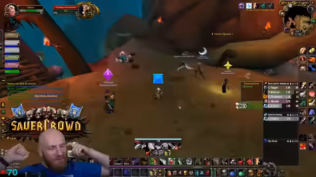 01:52:47Zu Beginn des Streamabschnitts werden verschiedene Quest-Ziele diskutiert. Zunächst wird über die Goblin-Sponsoring-Quest gesprochen, die jedoch erst später in Angriff genommen wird. Anschließend werden mehrere Gebiete für das Erledigen von Questen in Betracht gezogen, darunter Ödland, Arathi und Southshore. Dabei wird festgestellt, dass einige Quests, wie die in den Armen von Ödland, bessere Loot-Chancen bieten und erst auf höherem Level sinnvoll sind, während andere, wie die in der Arathi-Höhle, als zu gefährlich für das aktuelle Level eingestuft werden.
