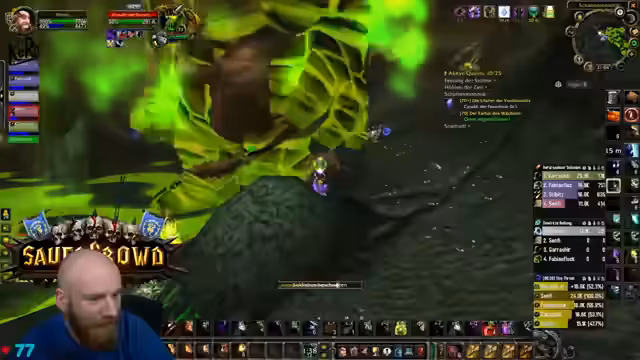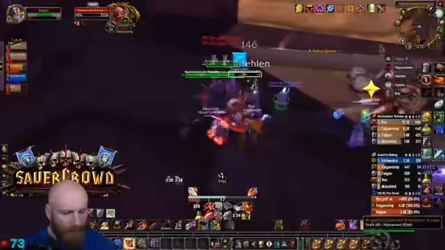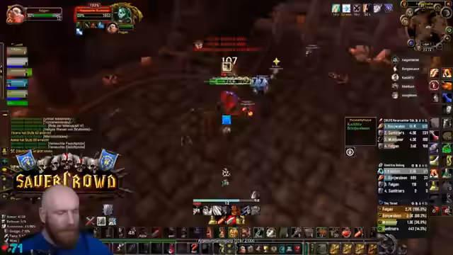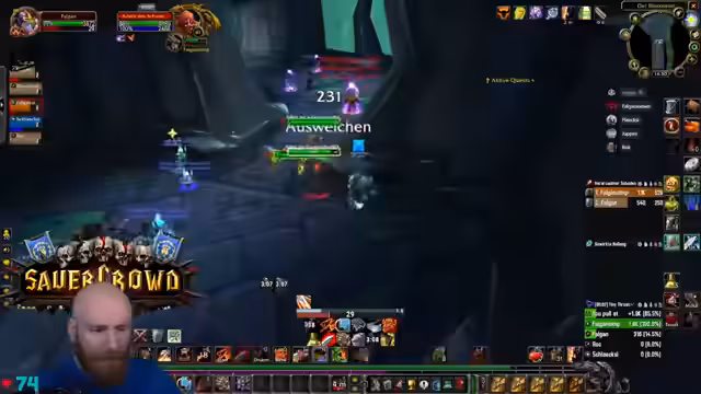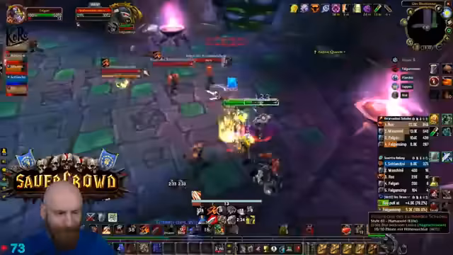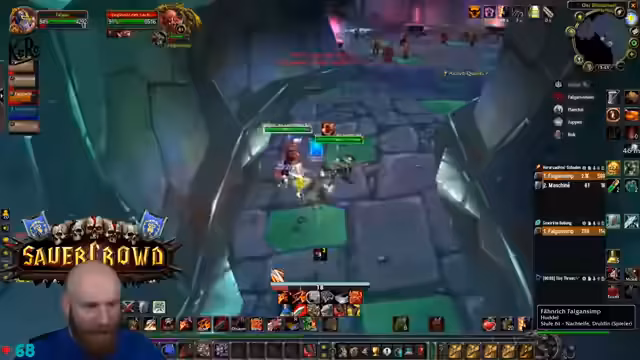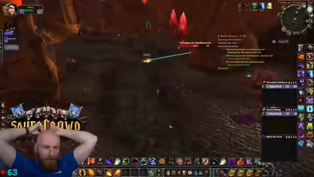 13:40:56Der Stream endet mit einem hektischen Kampf gegen eine große Masse an Non-Elite-Mobs, die nach dem letzten Boss aus einem Tor strömen. Der Fokus liegt auf dem schnellen und effizienten Eliminieren der Adds, wobei der Streamer den Tanking-Aspekt übernimmt und seine Gruppe durch den Chaos anführt. Der Ton ist angespannt und fokussiert, da es sich um den finalen Test des Dungeon-Runs handelt.