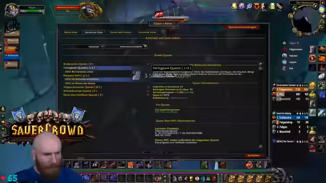 10:12:29Der Streamer konzentriert sich auf das Abschließen von Questlines, insbesondere bei der Begegnung mit Ruhel und den damit verbundenen Eliten. Er koordiniert mit dem Chat und nutzt die Gruppenfunktionen, um den Fortschritt zu beschleunigen. Währenddessen gibt es Diskussionen über Spielmechaniken wie die Verkleidungsquest und die Nutzung von Farm-Spots, wobei der Fokus auf effizientem Level-up liegt.