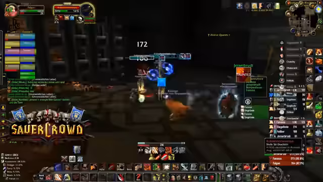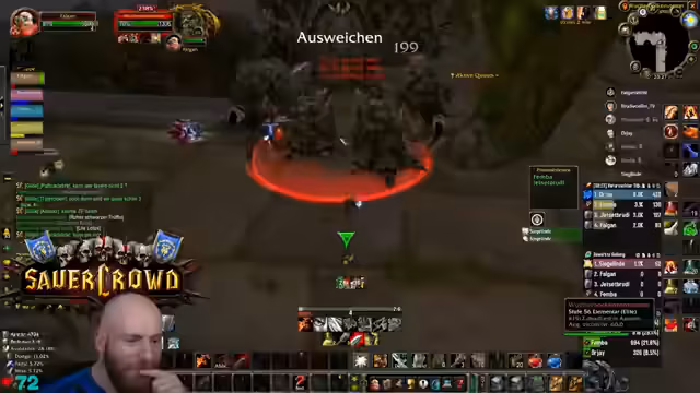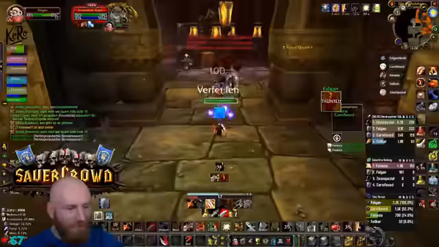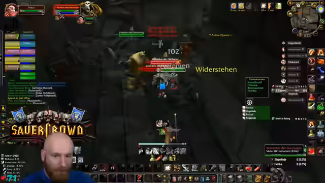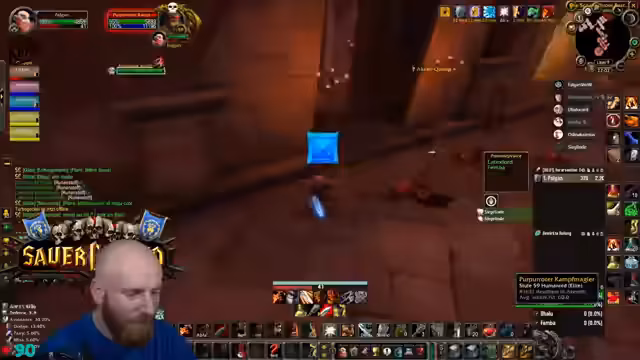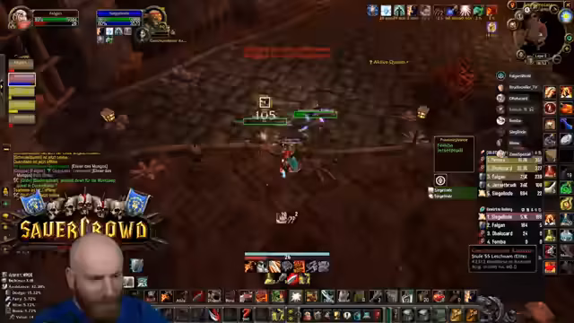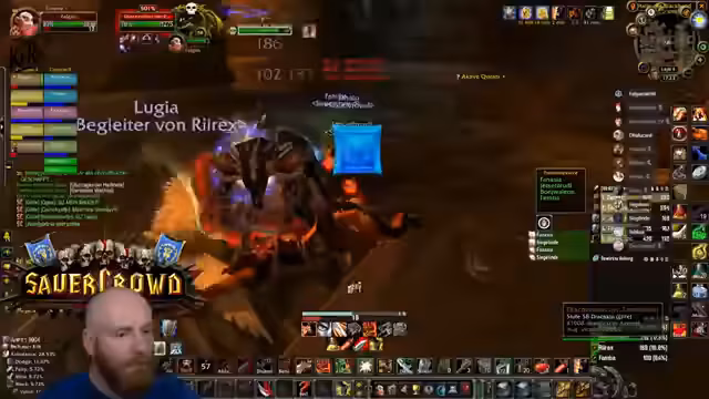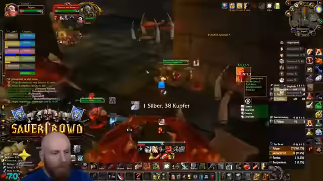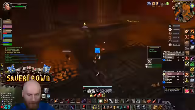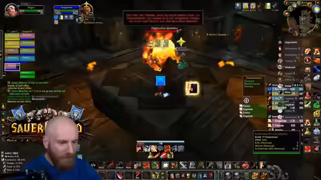 04:23:42Ein anspruchsvolles Event in der Instanz erfordert Konzentration, da die Gegner einen Knockback verursachen können, der die Spieler in den Raum schickt. Der Streamer warnt davor, sich von den Wänden wegbewegen zu müssen. Gleichzeitig werden potenzielle Drops wie die Feuerresistenz-Brust für den Tank Rudi diskutiert, die ein großes Upgrade für zukünftige Raids wie Molten Core darstellen würde.