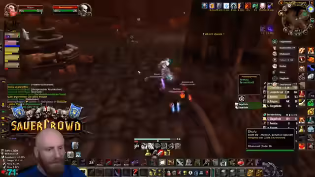 08:01:56Zu Beginn des Stream-Ausschnitts wird über verschiedene Pläne für Dungeon-Runs gesprochen. Man erwägt, den Endgame-Dungeon Stratholme zu absolvieren, zunächst mit voller Gruppe, später vielleicht als Speedrun mit weniger Teilnehmern. Es wird auch eine Diskussion über die Herausforderungen der Scholomance-Dungeons geführt, insbesondere im bezug auf den Schwierigkeitsgrad und die Taktik, wobei ein Run in der westlichen Schwarzfelsmine als sehr beschreibend eingestuft wird.