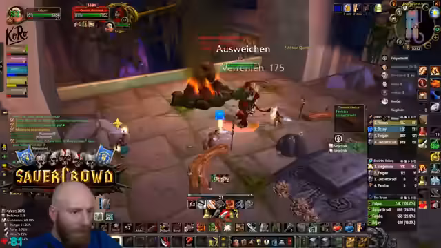 01:45:50Der Stream dokumentiert den weiteren Fortschritt durch den Dungeon. Es werden die Positionen der Mobs und die Pull-Strategien beschrieben, um die Gruppe zusammenzuhalten und unnötigen Schaden zu vermeiden. Der Überlauf von Mob-Plates wird als Problem identifiziert, das die Übersichtlichkeit beeinträchtigt. Die Taktik für den Bosskampf wird angekündigt, bei dem die Gruppe die Wände nutzen soll, um dem Feuer-Schaden zu entgehen, während der Boss gestunnt wird.