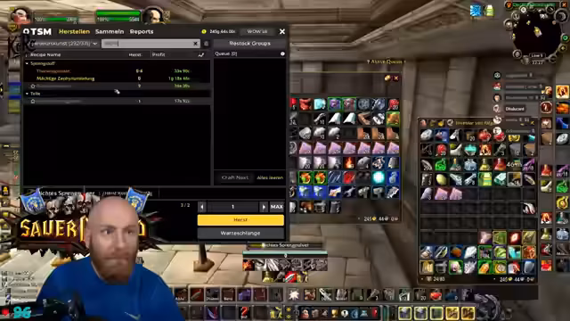 06:44:37Während des laufenden Dungeon-Runs spricht der Streamer über die Konsumables, die Caster-Klassen benötigen. Dazu gehören supreme Flasks, Tränke für Manaregeneration und Rüstung. Er erwähnt, dass ein bestimmtes Elixier (Greater Arcane Elixir) ein guter Drop wäre, aber nicht essentiell für den Erfolg ist. Der Streamer organisiert die Gruppe für den anstehenden Run und betont die Wichtigkeit von World Buffs für den bevorstehenden Living-Stratholme-Run nach dem Dungeon.