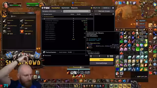 02:41:17Der Streamer plant verschiedene Instanzenruns. So möchte er mit Mieris eine Instanz besuchen, da dieser jedoch ein Anfänger ist, sucht er erfahrene Mitspieler. Für andere Runs, wie z.B. BRD und LBRS, wird das fehlende Equipment als Desaster angesehen. Trotzdem wird geplant, dass Dalu ab 14 Uhr verfügbar ist. Eine weitere Gruppe mit Tolkien und Latexlord plant ebenfalls einen DM West Run für 14 Uhr, der jedoch spätestens um 15 Uhr enden muss.