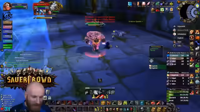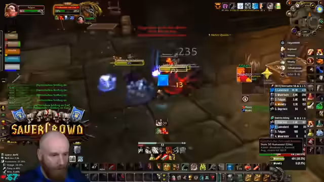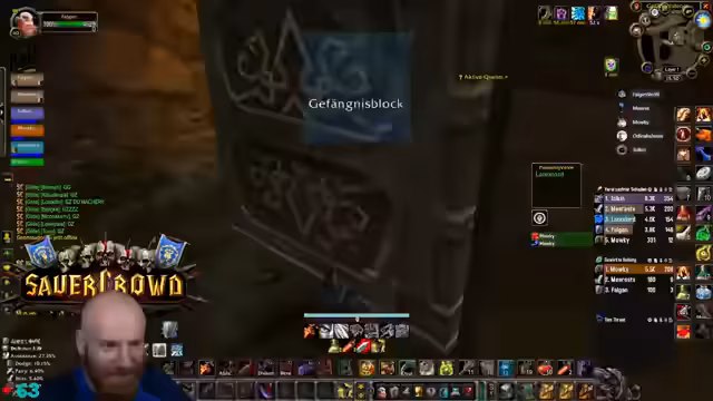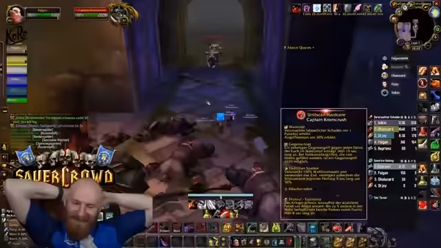 06:30:37Der Kampf gegen den Captain in BRD wird erklärt. Um zu verhindern, dass dieser nach dem Tod der Adds neue Mobs spawnt, müssen alle Adds gleichzeitig getötet werden. Der Streamer pullt die Gruppen an die Wände, um sich zu schützen, und betont die Notwendigkeit, einen Magier mitzubringen, um die Adds effektiv zu kontrollieren.