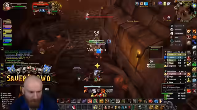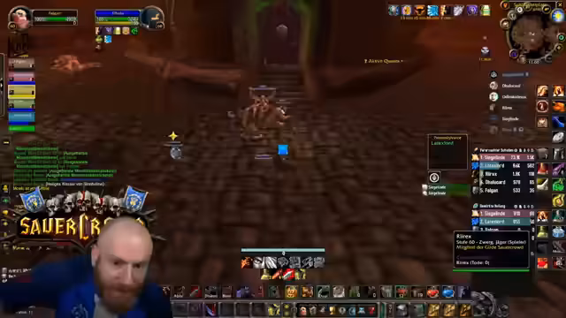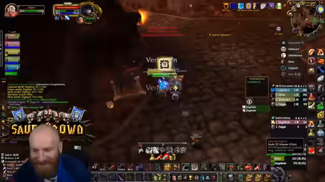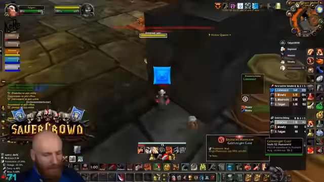 01:07:37Der Höhepunkt des Streams ist der Düsterbruch West Run. Diese Instanz wird als die gefährlichste im gesamten Klassik-Content eingestuft. Zusätzlich zur normalen Instanz wird die Warlock Mount Quest absolviert, die an sich schon als sehr risikoreich gilt. Die finale Gruppe besteht aus dem Streamer als Tank, Sieglinde als Heiler und einem Magier. Für die Mount Quest sind Tolkien und Terste zuständig. Das Ziel ist es, die Instanz und die Quest erfolgreich und ohne Tode abzuschließen.