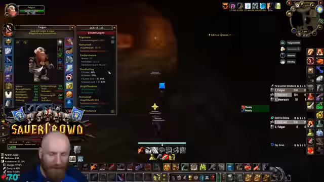 00:02:58Der Stream beginnt mit der Diskussion über die Ränge der Charaktere im Spiel. Es wird bestätigt, dass ein Krieger bereits gut ausgestattet ist, während ein dritter Charakter noch offen ist und Probleme bereitet. Der Fokus liegt auf der Vorbereitung für den heutigen Tag, der verschiedene Dungeons und spezielle Quests wie die Warlock Mount Quest umfasst. Die Teilnehmer setzen sich aus mehreren Warlocks und einem Mage zusammen, die auf die anstehenden gefährlichen Instanzen wie Düsterbruch West vorbereitet werden.