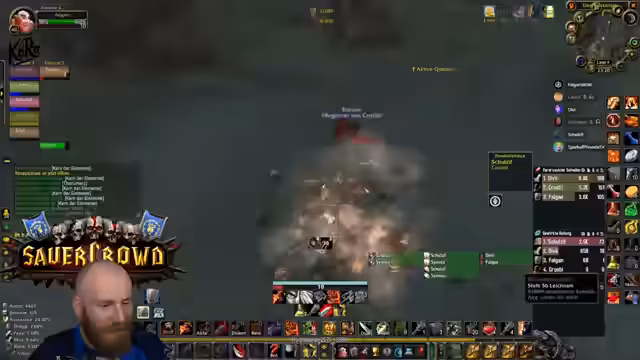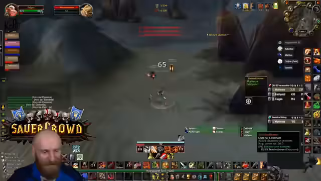 14:33:50Der Streamer befindet sich im Silithus Dungeon und unternimmt einen Grind. Er beschreibt die Route und erwähnt, dass er einige Eliteskills auslassen muss, um die Gruppe sicher durch die Gegend zu führen. Ein reiner Bodypull ohne den Griff des Eliteskills ist möglich, aber er rät dazu, vorsichtig zu sein, da es ein bisschen scary sein kann. Er merkt an, dass die anderen Jungen wissen, was sie tun, und das nicht seine Verantwortung ist. Der Streamer betont, dass er das tut, weil es ihm Spaß macht und es anscheinend auch den Zuschauern Spaß bereitet.