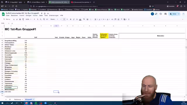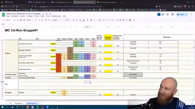 05:09:23Der Streamer diskutiert den aktuellen Stand der Raidvorbereitung, insbesondere die Erstellung und Anpassung einer Verbrauchsmaterial-Liste im Sheet. Diese Liste befindet sich noch im Work-in-Progress-Zustand und wird kontinuierlich aktualisiert, um die benötigten Materialien für anstehende Raids wie Molten Core zu katalogisieren. Besonderes Augenmerk liegt auf der Verfügbarkeit kritischer Reagenzien wie Black Lotus, die für die Herstellung von Tränken unerlässlich sind, deren Beschaffung jedoch als unrealistisch eingestuft wird.