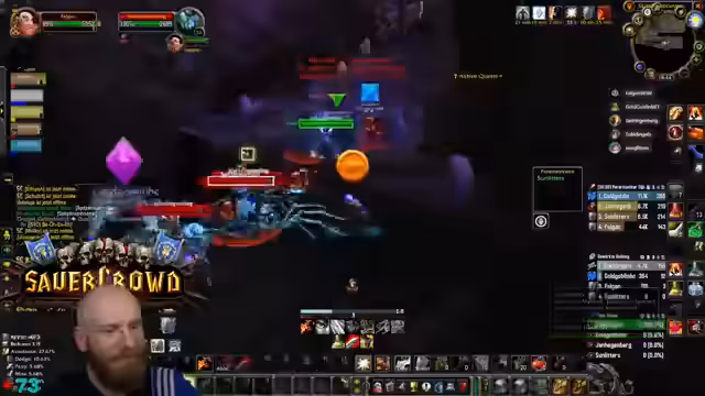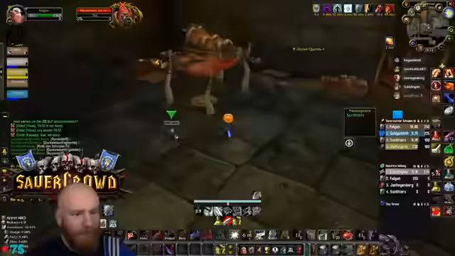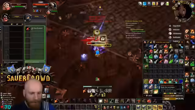 07:05:48Die Gruppe arbeitet an der Quest für Eier und Muttermilch in Blackrock Depths. Der Streamer sammelt Eier und bufft sich regelmäßig, während er Mobs und Bosse bekämpft. Es werden spezielle Taktiken angewendet, wie z.B. das Teilen der Quest und das Management von Debuffs wie Netze und Gift. Die Dynamik der Gruppe zeigt sich im koordinierten Vorgehen und der Unterstützung einzelner Mitglieder während des Grinds.