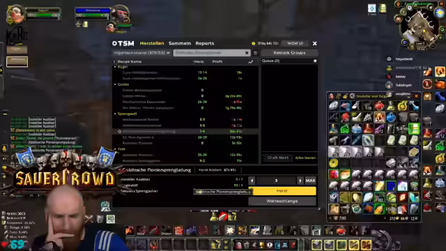 09:05:20Es wird das Addon 'Gogo Loot' vorgestellt, das das Nachverfolgen von Loot ermöglicht, besonders für Raid-Lootmaster. Die Gruppe klärt auf, dass es sich um kein Scam-Tool handelt. Anschließend taucht ein 'New Rate' auf und ein Deal über einen 'Leuterungsdrank' wird zwischen zwei Spielern getroffen. Der Streamer erwähnt technische Probleme mit einem Addon, das Anzeigefehler verursacht.