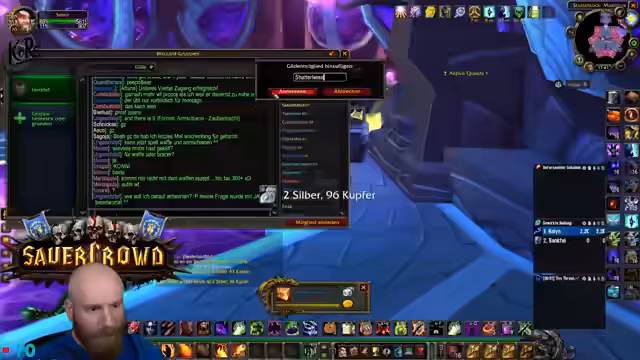 09:35:07Nach der intensiven Diskussion um das Skullflame Scheidt macht der Streamer eine kurze Essenspause. Nach der Rückkehrt besteht das Hauptziel darin, den Ruhestein zu nutzen, um sich schnell in den Hardcore-Server einzuloggen und dort Buffs abzuholen. Die Diskussionen und Beschlüsse aus der Pause fließen in die weiteren Pläne ein, wie das Skullflame Schild verwaltet werden soll. Der Ton bleibt sachlich, wobei das Ziel bleibt, den Tag mit gezieltem Grind für Quests und Dungeons effizient zu beenden.