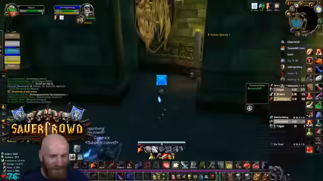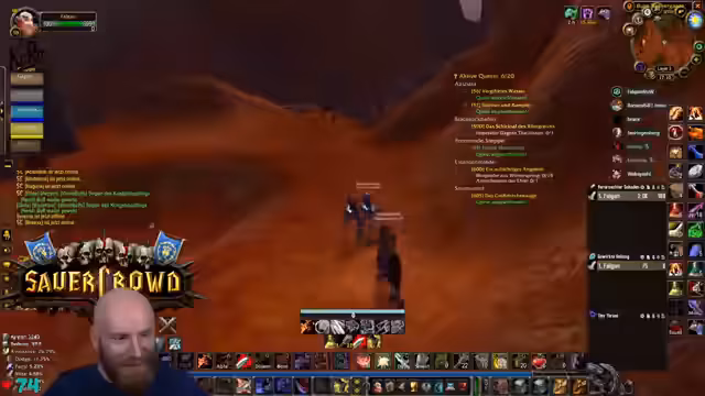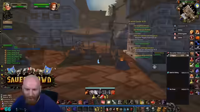 05:30:22Die Vorbereitungen für den Tempel-Run laufen auf Hochtouren. Der Streamer verabschiedet sich von der Chat-Interaktion und weist die Gruppe ein, sich zu orientieren und nicht in PvP-Zonen zu geraten. Er nutzt die Zeit noch einmal, um den Fokus auf die Notwendigkeit von HealCom zu legen, und stellt klar, dass dies eine unumstößliche Voraussetzung für die Teilnahme an den anstehenden, schwierigeren Dungeons ist. Der Stream selbst richtet sich nun vollends auf das anstehende Spielereignis aus.