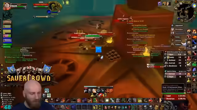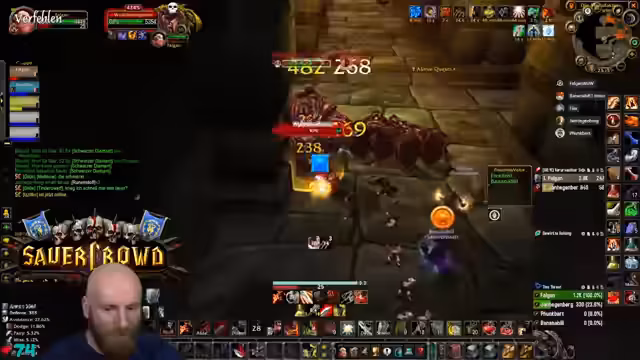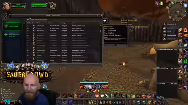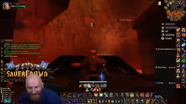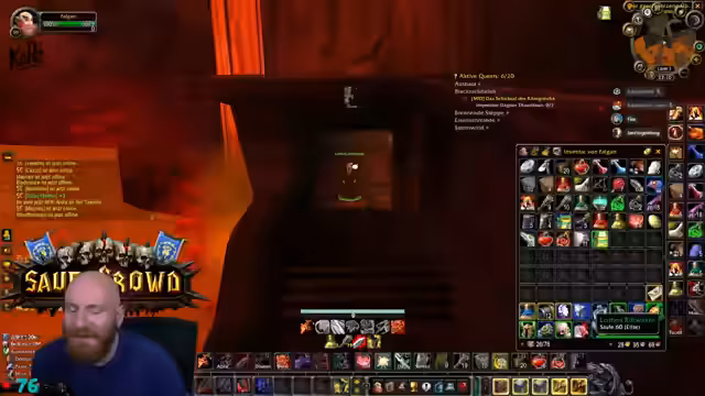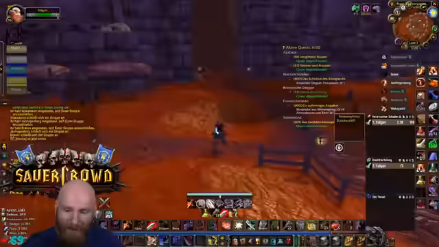 01:45:17Es wurden organisatorische Besprechungen geführt, um einen fehlenden DPS für einen Temple Run zu finden. Wacker soll Jan Hegenberg kontaktieren. Schwerpunkt liegt auf der notwendigen Questline für Molten Core. Jeder Spieler benötigt sieben Douses, die über eine langwierige Questreihe mit Silithus-Elites und hohem Rufbedarf zu erhalten sind. Dies ist eine Voraussetzung, um Runen in Molten Core zu löschen, und essentiell, um den finalen Boss Ragnaros spawnen zu lassen.