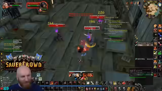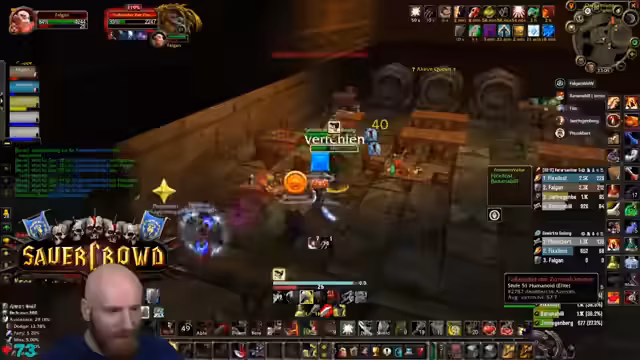 03:17:46Der Streamer befindet sich kurz vor dem Start eines Deadmines-Dungeon-Runs. Er bittet im Chat nach Mitspielern und gibt erste Anweisungen. Dabei zeigt er sich ungeduldig und fürchtet, dass der Run zu lange dauern könnte. Die Gruppe hat das Ziel, spezielle Quests abzuschließen und möglicherweise Loot für den Streamer zu farmen. Er weist darauf hin, dass sie nicht lange in der Taverne verweilen sollten, da sie bald losziehen müssen und es auf den Drops ankommt.