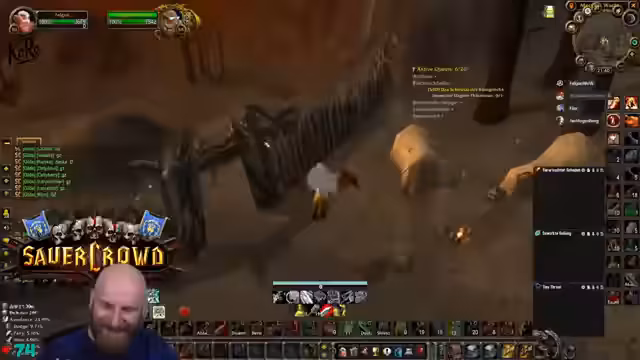 10:55:28Der offizielle BRD-Raid startet, kurz nachdem der Streamer von einer Essenspause zurückkommt und beinahe die Buffs verpasst hätte. Die Crew beginnt, die Mobs zu clearen, wobei einige Teammitglieder auf unvorhergesehene Weise sterben. Der Streamer berichtet humorvoll über die Todesangst eines Spielers. Während des Raids werden strategische Entscheidungen getroffen, wie die Verwendung von Tränken und das Management von Ressourcen. Die Spannung steigt, als ein Bossgegner erscheint.