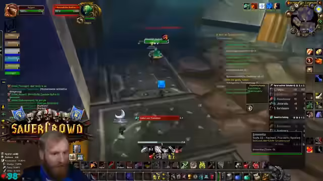06:33:22Der Stream beginnt mit anspruchsvollem Dungeon-Gameplay, bei dem der Fokus auf einer komplexen Gruppendynamik liegt. Es wird von kritischen Situationen berichtet, in denen ein Spieler, Raya, in Gefahr schwebt und der Streamer, der als Tank agiert, unter erheblichem Druck steht, sein Leben zu schützen. Dabei wird betont, dass die Zusammenarbeit und Kommunikation in der Gruppe der Schlüssel zum Erfolg sind, auch wenn die Situationen oft sehr gefährlich und unübersichtlich sind. Dies wird durch Aussagen wie „Ich krieg's wirklich nicht an ohne Wut“ und „Stark Team, let's go“ unterstrichen und zeigt die hohe Anspannung während des Spiels.