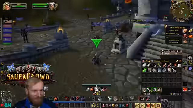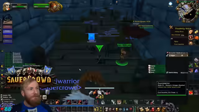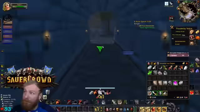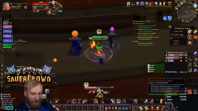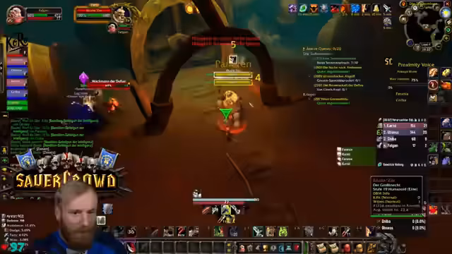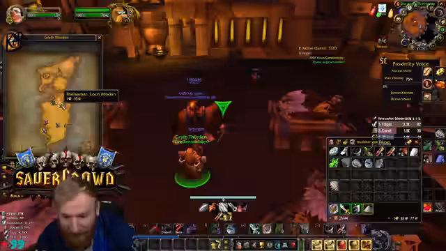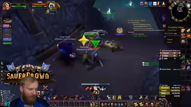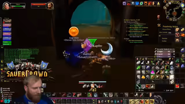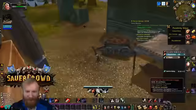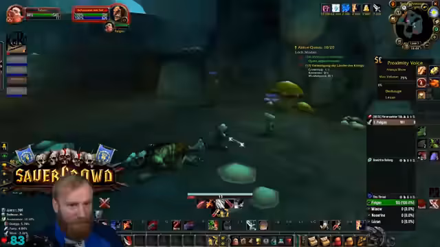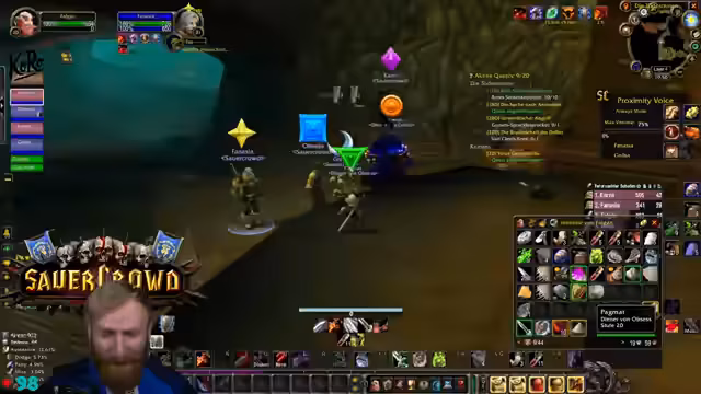 09:39:53Die Gruppe erreicht den Eingang von Deadmines. Der Tank äußert seine Besorgnis bezüglich des geringen Aggro-Points (AP) und bittet die Heiler um erhöhte Wachsamkeit. Es wird die Strategie besprochen, großzügig zu clearen, um unerwartete Züge und Backpulls zu vermeiden. Ein besonderes Augenmerk wird auf den Warlock-Fleger gelegt, da dieser mit seinem Pet gefährliche Pulls verursachen kann. Es werden Pausen für Verpflegung und Buffs eingelegt. Die Atmosphäre ist angespannt, aber die Gruppe navigiert souverän durch die ersten Elite-Mobs und beginnt, die Quest-Items zu sammeln und den Dungeon schrittweise zu erkunden.
