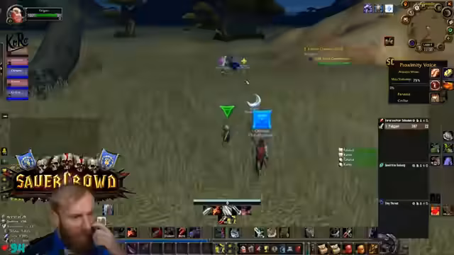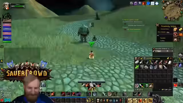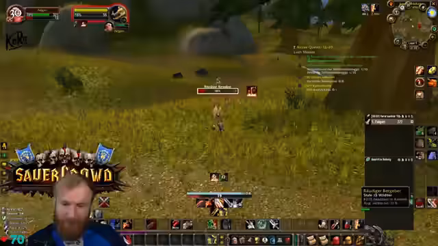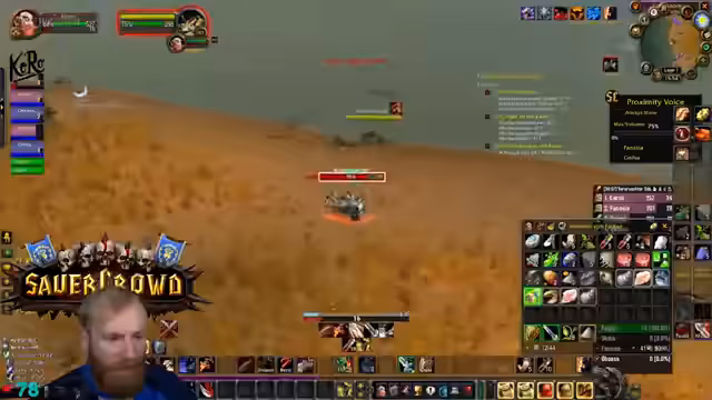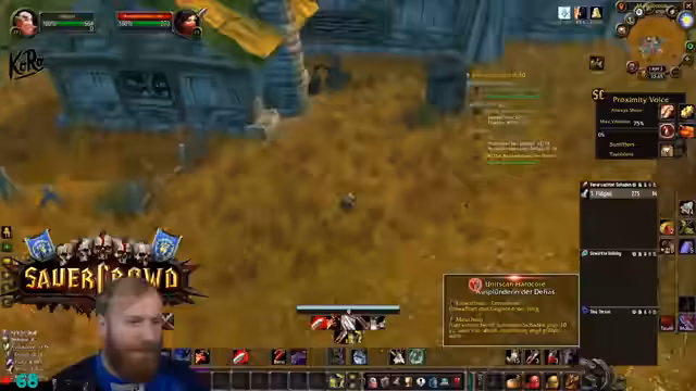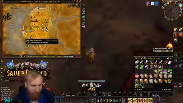 11:25:35Es herrscht ein Mangel an Kupfer und Wolle im Inventar, was den Streamer zwingt, seine Ressourcen sorgfältig zu verwalten, da er als Krieger auf hohe Qualität von Bandagen angewiesen ist. Die Gruppe bewegt sich durch gefährliches Gebiet, das vom Feind kontrolliert wird, und der Streamer warnt die Teilnehmer eindringlich vor PvP-gflaggten Spielern und Wachen, da ein Angriff in dieser Zone fast sicher zum Tod führen würde.