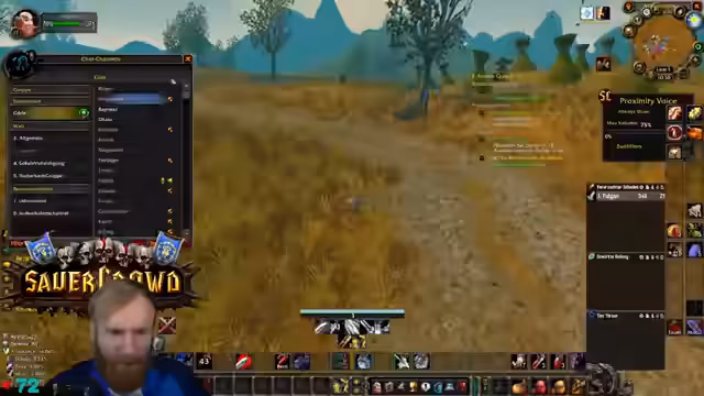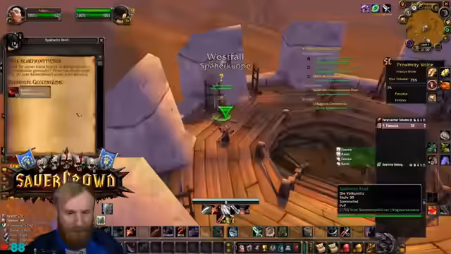 00:02:55Der Stream beginnt mit einem kurzen Intro, bevor es direkt ins Spiel geht. Der Fokus liegt auf dem Weiterführen der Quests in Westfall und die Notwendigkeit, die Bärenfest-Quest zu meistern. Es werden technische Probleme im Ingame-Chat erwähnt, die die Kommunikation erschweren. Der Streamer plant, nach Westfall zu fliegen, um eine Quest abzugeben, und anschließend nach Goldshire zu laufen, während er gleichzeitig parallel seine Berufe skillen und auf Level 20 für den Dungeon Deadmines (DM) hinarbeiten will.