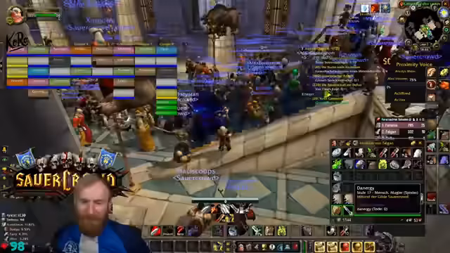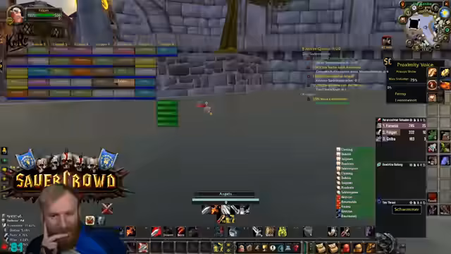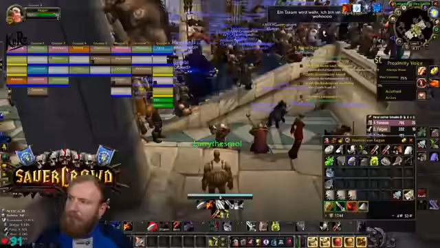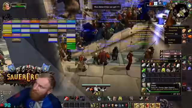 12:22:34Ein World Buff in Sturmwind wird in wenigen Minuten gecalled, was die Gruppe unter enormen Zeitdruck setzt. Der Streamer gerät in Panik, da die Gruppe nicht genug Geld für eine Portierung hat und auf riskante Weise das Ziel erreichen muss. Es kommt zu einem chaotischen und stressigen Versuch, den Buff noch rechtzeitig zu erreichen, wobei er seine große Sorge um das Wohl der Teilnehmer ausdrückt.