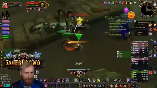 02:37:53Der Streamer unternimmt einen riskanten Versuch, einen Spielcharakter aus einer schwierigen Lage zu retten, während er gleichzeitig die unkoordinierte Gruppe kommentiert. Eine drohende Situation erfordert schnelles Handeln mit dem Buzzard. Gleichzeitig wird über ein kritisches Makro-Problem gesprochen, das für den Krieger-Tank funktioniert und die Bedrohungsliste automatisch übernimmt. Dieses Tool ist jedoch inkompatibel mit einem anderen Addon und die Layer-Probleme verhindern eine reibungslose Funktion, was den Streamer frustriert.