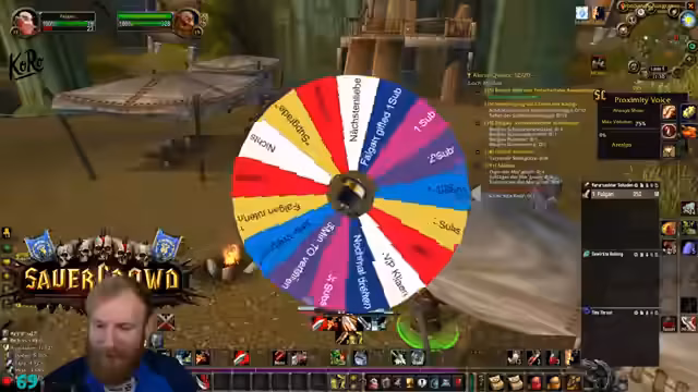 02:59:05Ein Fokus des Streams liegt auf dem alltäglichen Gildenleben und der gegenseitigen Hilfe. Der Streamer organisiert das Besorgen von Materialien für andere Gildenmitglieder, wie zum Beispiel Holz für Zauberschreib. Er gibt detaillierte Anweisungen, wie man von Sturmwind nach Darkshore gelangt, um einem anderen Spieler zu helfen. Im Hintergrund werden auch die Level-Fortschritte anderer Gildenmitglieder verfolgt und das anstehende Gildentreffen am Abend besprochen, bei dem Anwesenheitspflicht herrscht.